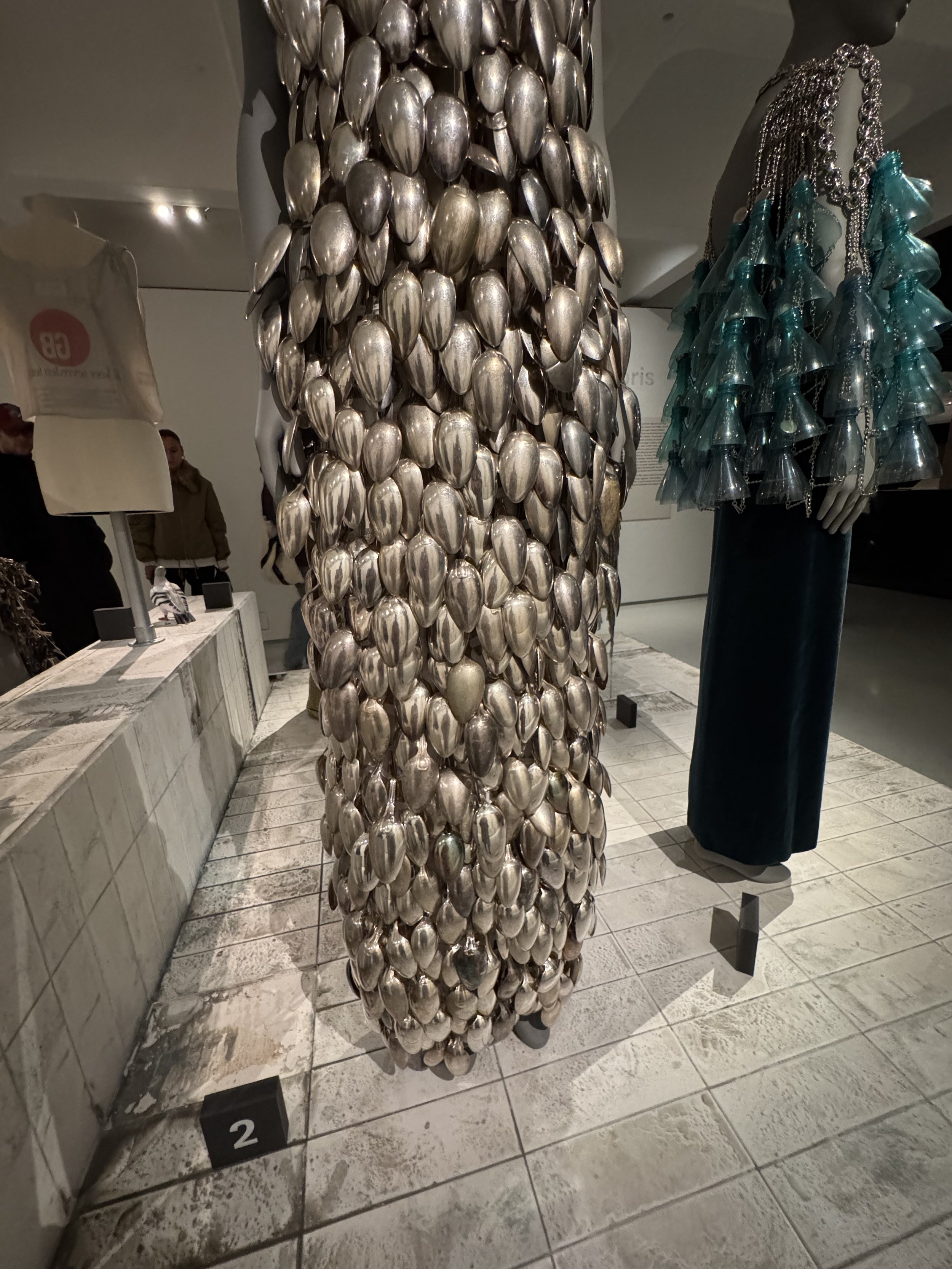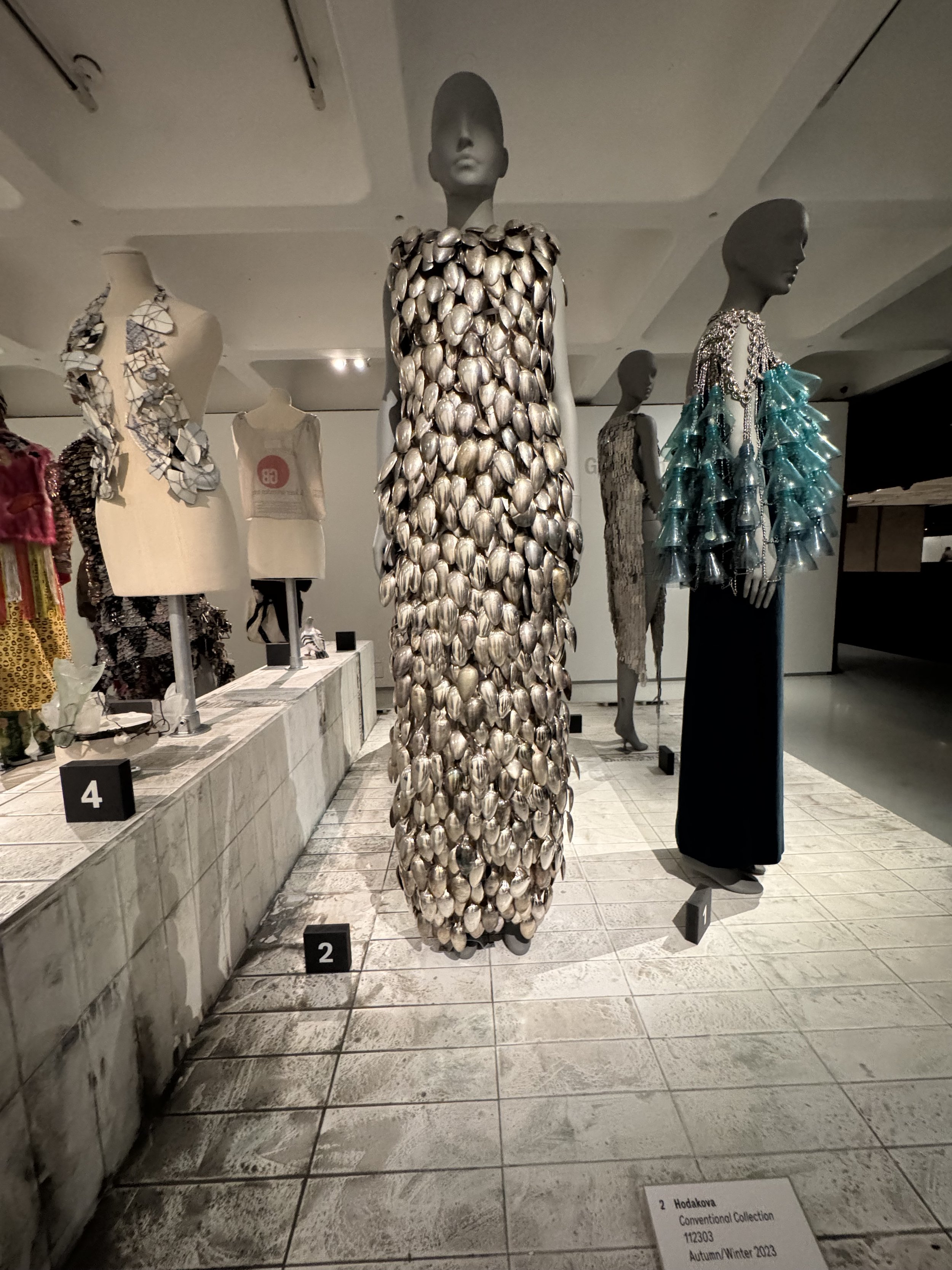Below- Hodakova — “Conventional Collection,” A/W 2023. Dress made entirely from recycled metal spoons. Industrial elegance redefined.